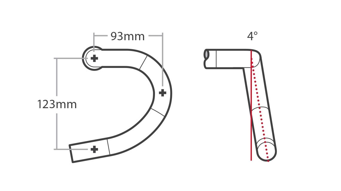 Die Lenkerform Variable Radius Compact Flare (VR-CF) sorgt mit einem Reach von 93 mm, einem Drop von 123 mm und einem Flare von 4° in allen Griffpositionen für mehr Komfort.
