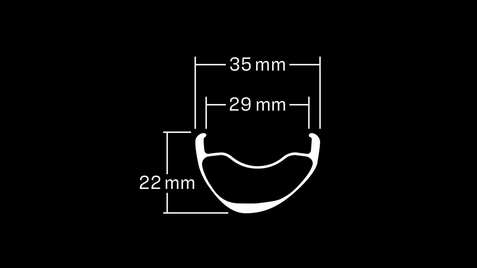 - Elite-Felge aus OCLV Carbon mit 29 mm Innenweite, 35 mm Außenweite und 22 mm Profilhöhe