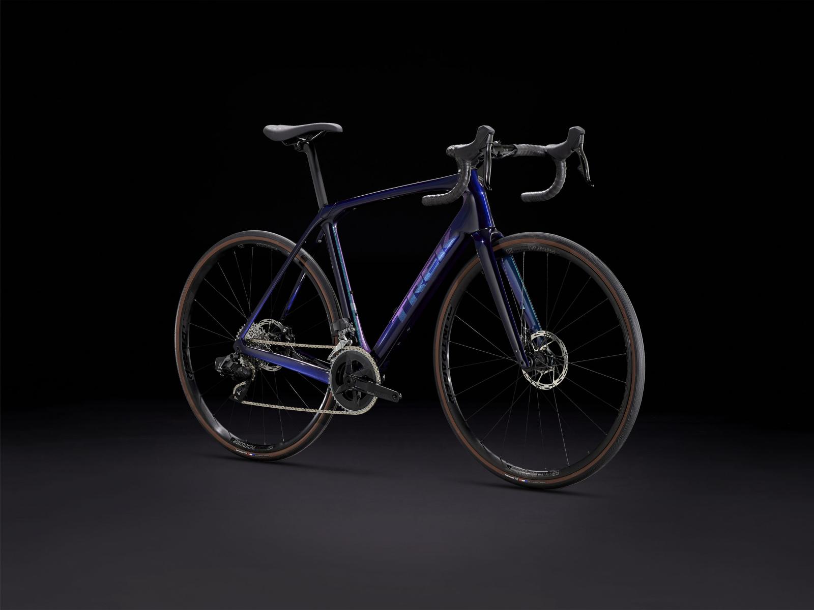 Einen leichten, optimierten Rahmen aus 500 Series OCLV Carbon mit vibrationsdämpfendem hinterem IsoSpeed, SRAMs drahtlosen, elektronischen Rival AXS 2x12-Antrieb und kraftvoll zupackende Flat Mount-Scheibenbremsen. Dazu gibts breite Bontrager Paradigm Comp Tubeless Ready-Laufräder, ein integriertes Carboncockpit, ein internes Staufach und eine interne Zugführung, die allesamt zum enormen Potenzial und zum schlanken Look des Bikes beitragen. Dank Befestigungsmöglichkeiten am Oberrohr lässt sich für längere Ausfahrten eine Tasche ganz ohne Spanngurte oder Riemen sicher anbringen.