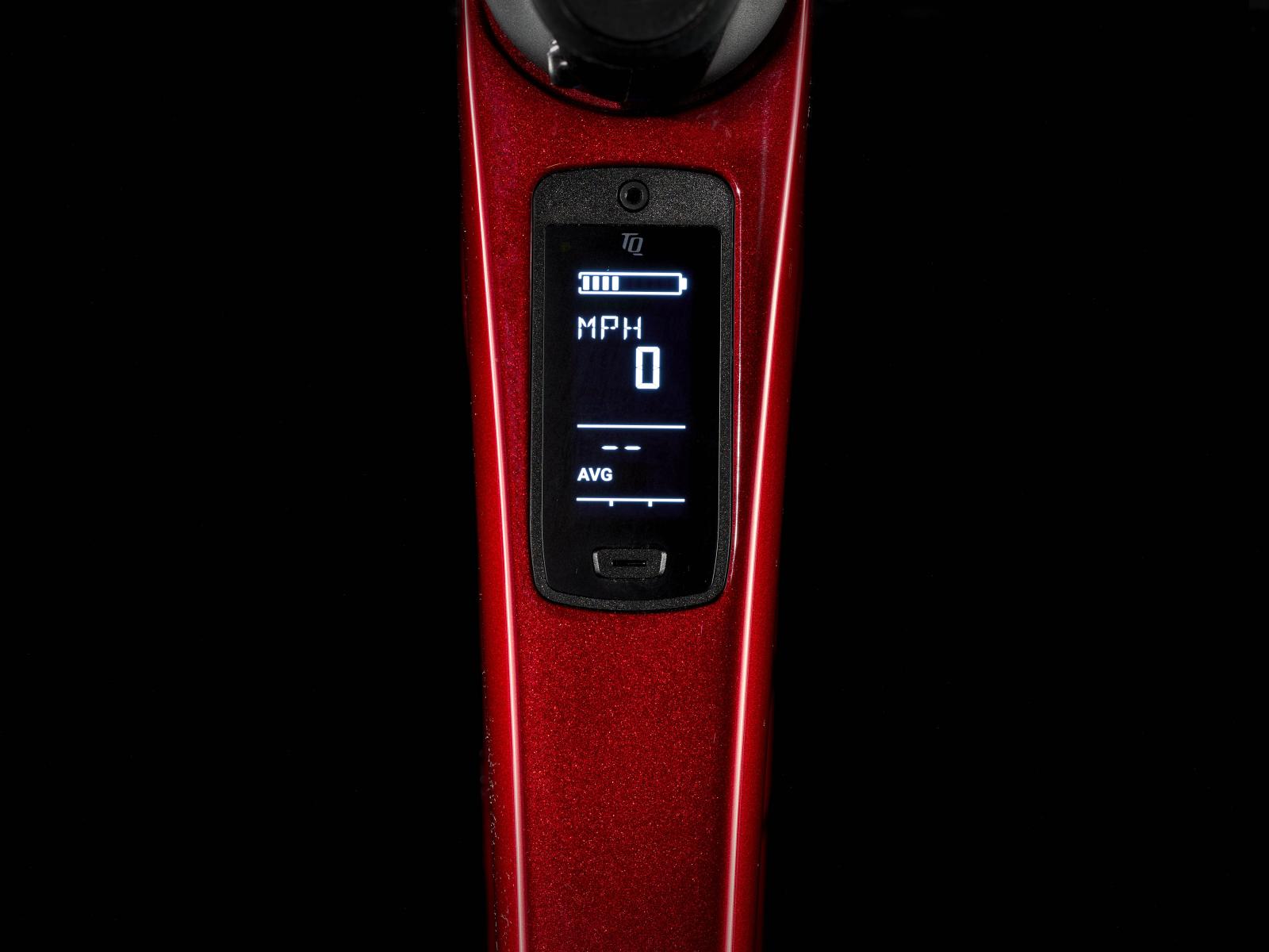 Unseren besten und leichtesten Rahmen aus 800 Series OCLV Carbon mit hinterem IsoSpeed. Einen kraftvollen Harmonic Pin Ring Motor von TQ mit 50 Nm Drehmoment und einer Unterstützung bis 25 km/h, einen 360 Wh großen integrierten Akku, ein in den Rahmen integriertes, smartes LED-Display und diskrete Bedienelemente in den Bremsgriffgummis für das Wechseln der Unterstützungsmodi. Aeolus Pro 3V Laufräder aus OCLV Carbon, eine drahtlose, elektronische SRAM Force XPLR AXS D2 1x12-Schaltung, Carbonkurbeln, einen vibrationsdämpfenden Bontrager Pro IsoCore Lenker und einen RCS Pro Vorbau mit integrierter Zugführung für eine cleane Optik.