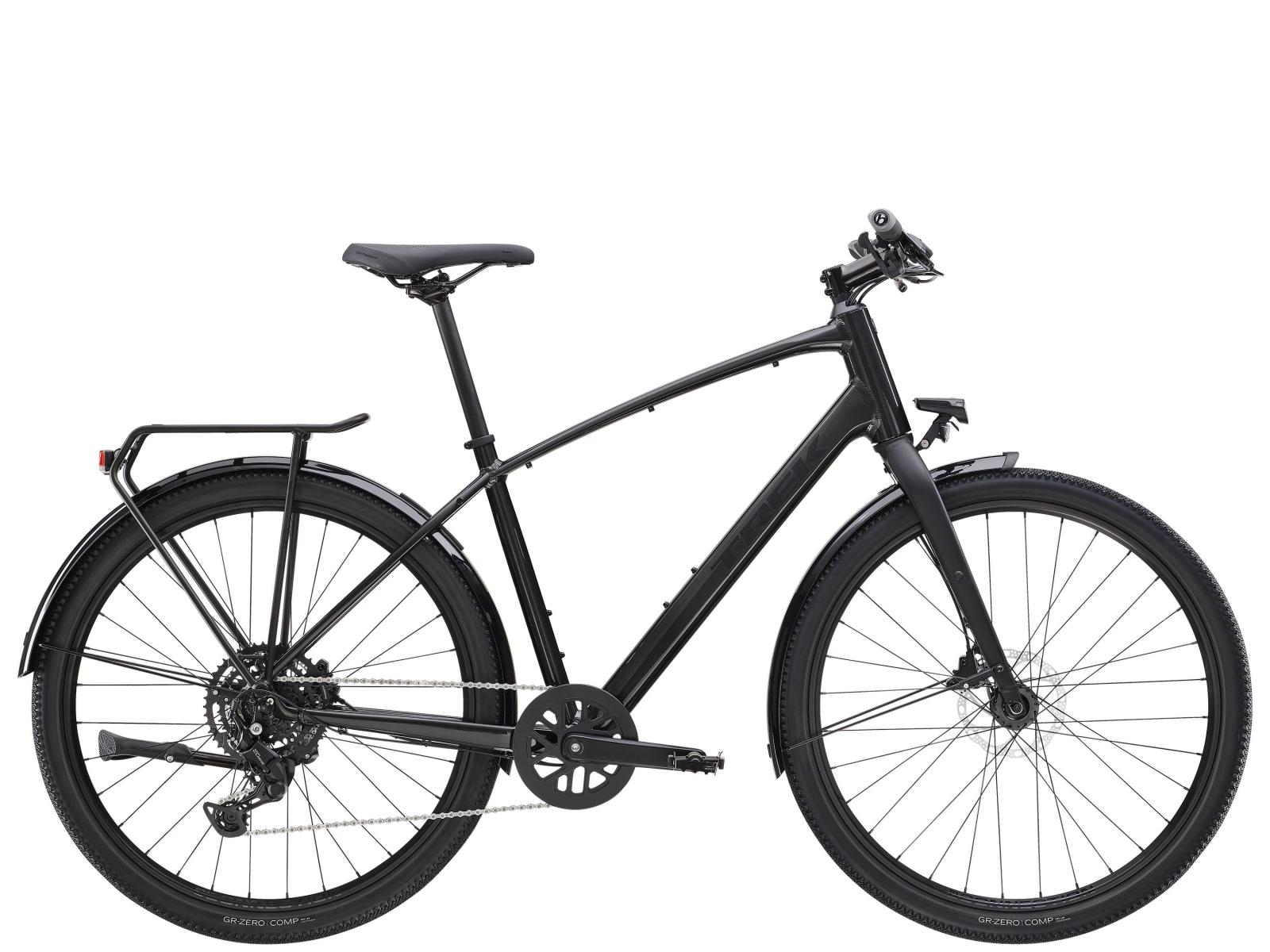 Einen leichten Aluminiumrahmen mit interner Zugführung für einen sauberen Look, 650B-Laufräder mit breiten 50C-Reifen zur Verbesserung der Geländegängigkeit und des Komforts in abwechslungsreichem Terrain, eine zuverlässige Shimano CUES 1x9-Schaltung mit breitem Übersetzungsbereich, komfortable ergonomische Griffe, kraftvolle hydraulische Scheibenbremsen für zuverlässige Bremsleistung bei jeder Witterung, einen MIK-kompatiblen Gepäckträger, Beleuchtung, Schutzbleche und einen Seitenständer.