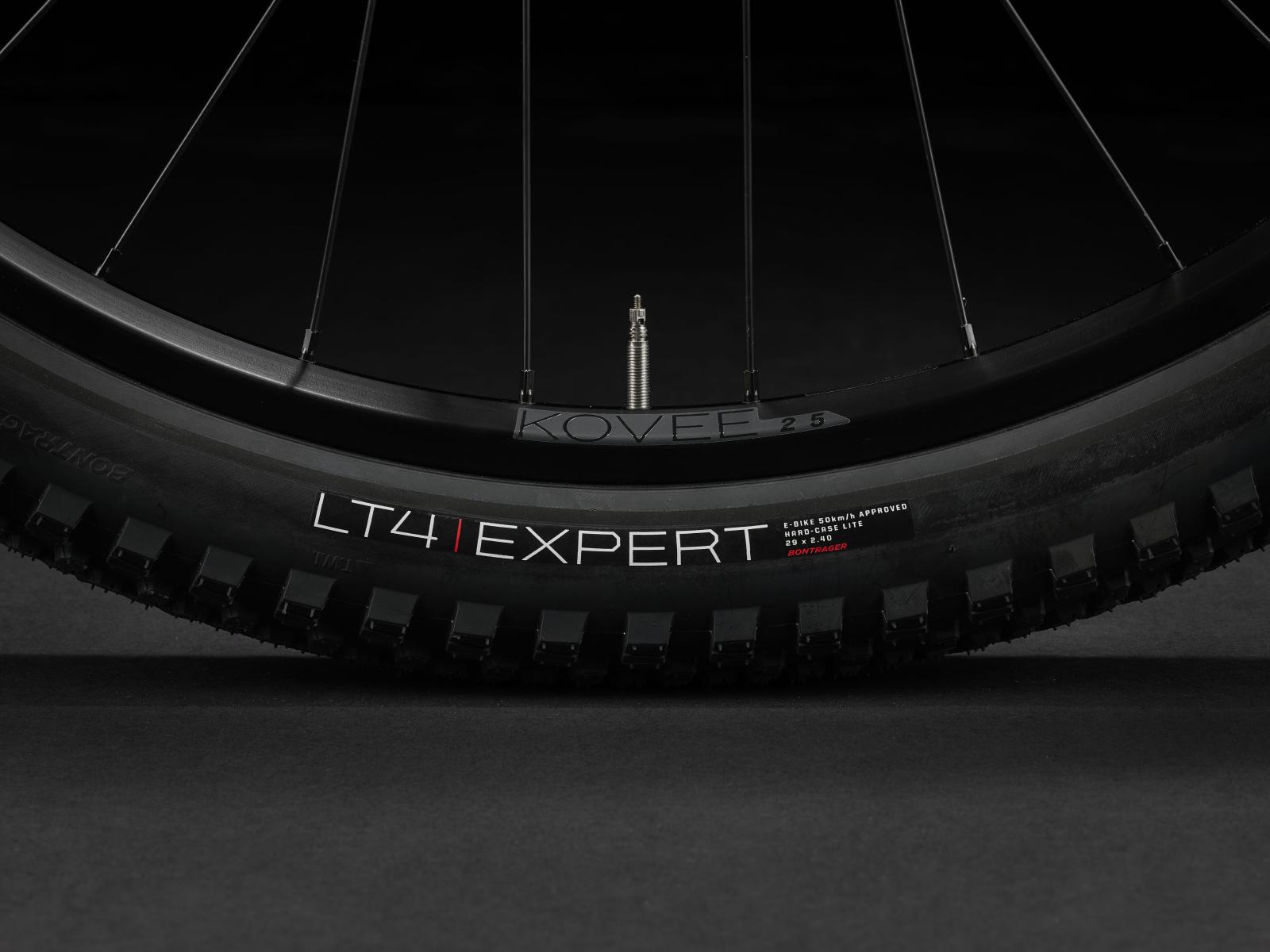 Reifen: Bontrager LT4 Expert, reflektierender Streifen, Drahtwulstkern, 60 TPI, 27.5 x 2.40