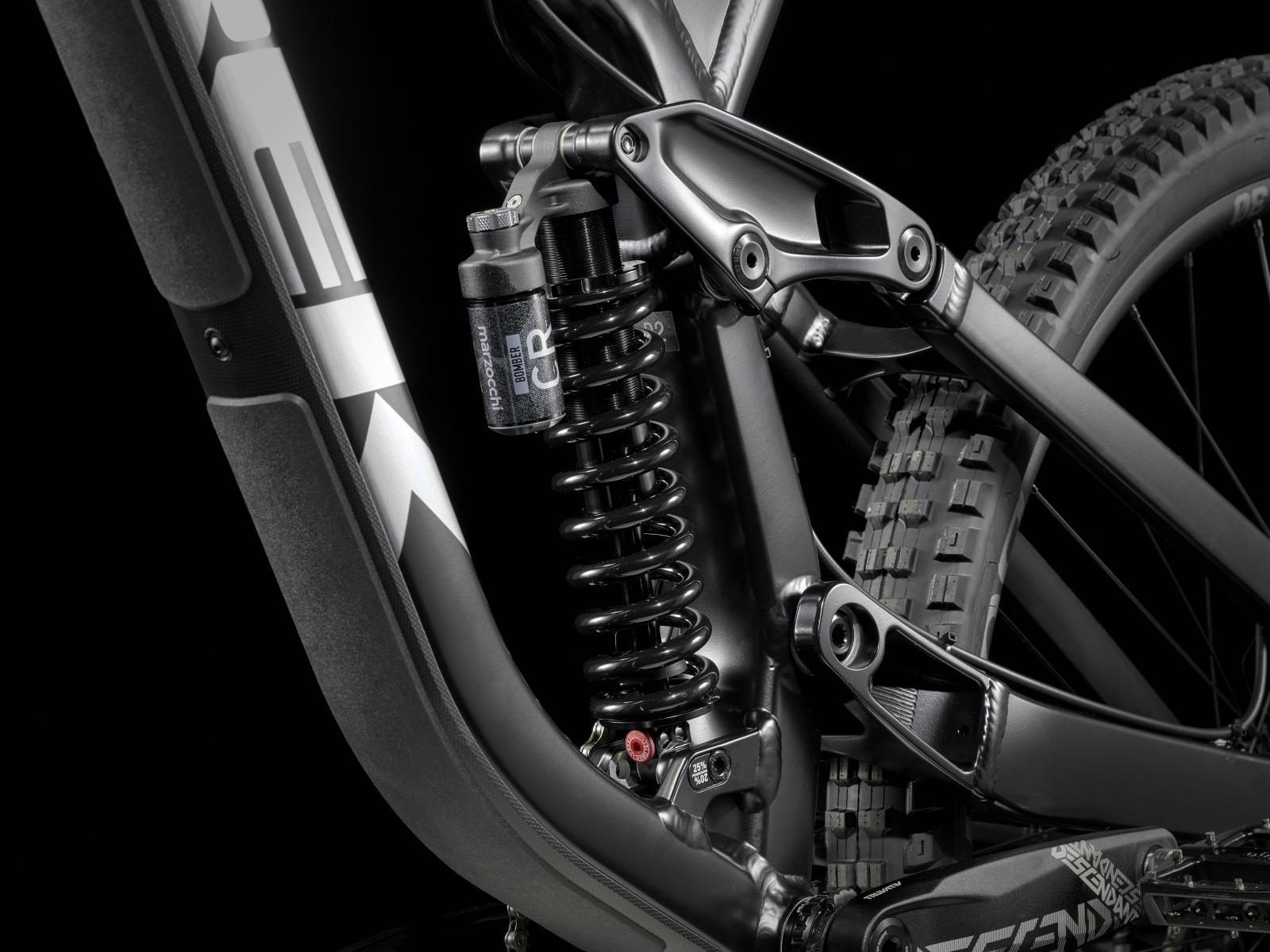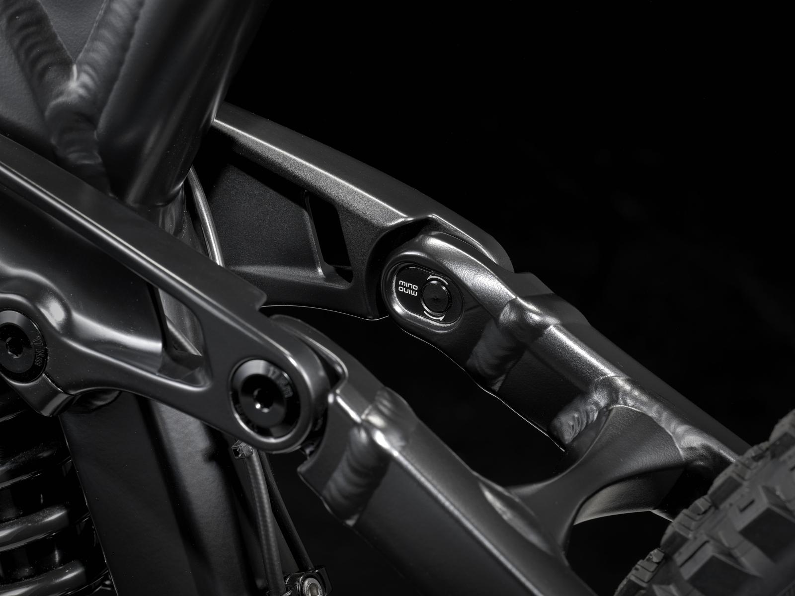 - Das neue Fahrwerkslayout mit hohem Dreh- und Umlenkpunkt verbessert die Traktion, unterstützt höhere Geschwindigkeiten und reduziert den Pedalrückschlag für mehr Stabilität.
