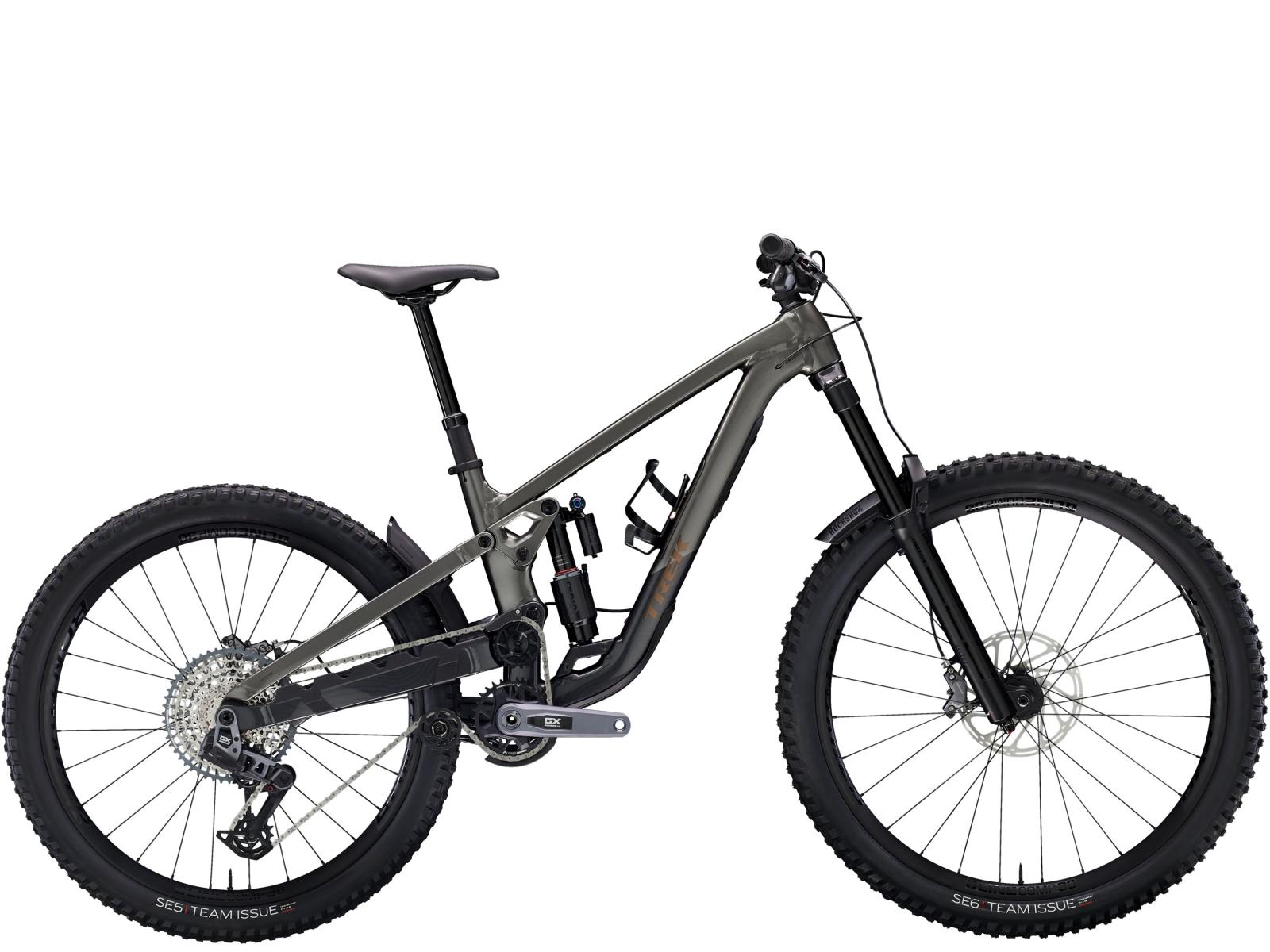 Einen Rahmen aus Alpha Platinum Aluminium mit High-Pivot-Fahrwerk und Umlenkrolle sowie ein Rahmenstaufach. Eine RockShox ZEB Select+ Gabel mit 170 mm Federweg, DebonAir Federung und Charger 3 RC2 Dämpfung und einen RockShox Vivid Select+ Hinterbaudämpfer mit ebenfalls 170 mm Hub. Außerdem die drahtlose SRAM GX AXS Transmission mit breiter Übersetzung für knackige Anstiege, eine Bontrager Line Variosattelstütze und eine Mullet-Konfiguration (29" vorn, 27,5" hinten) mit Bontrager Line Comp 30 Tubeless-Ready-Laufrädern samt Rapid Drive Nabe.