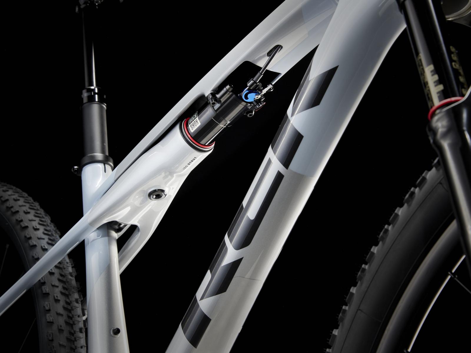 Einen Rahmen aus SL OCLV Mountain Carbon mit moderner XC-Geometrie. Außerdem kommt es mit einer RockShox Reba RL 110-mm-Federgabel mit SoloAir-Federung und Motion Control Dämpfung und einem RockShox SIDLuxe IsoStrut 80-mm-Hinterbaudämpfer – natürlich komplett mit Remote-Lockout. Eine komplett drahtlose, elektronische SRAM GX AXS 12fach Transmission, ein Lenker aus OCLV Carbon, Bontrager Line Variosattelstütze, Bontrager Kovee Comp 25 Tubeless Ready-Laufräder und hydraulische SRAM Level Bronze 2-Kolben-Scheibenbrensen.