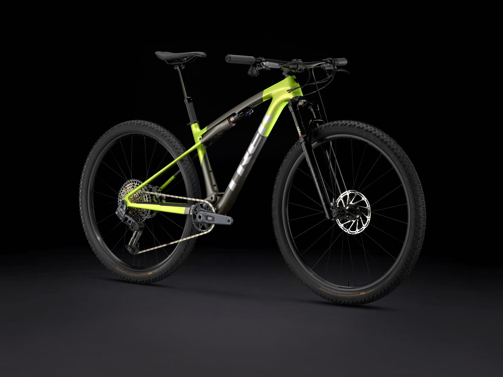 Einen Rahmen aus SL OCLV Mountain Carbon mit moderner XC-Geometrie. Außerdem kommt es mit einer RockShox Reba RL 110-mm-Federgabel mit SoloAir-Federung und Motion Control Dämpfung und einem RockShox SIDLuxe IsoStrut 80-mm-Hinterbaudämpfer – natürlich komplett mit Remote-Lockout. Eine komplett drahtlose, elektronische SRAM GX AXS 12fach Transmission, ein Lenker aus OCLV Carbon, Bontrager Line Variosattelstütze, Bontrager Kovee Comp 25 Tubeless Ready-Laufräder und hydraulische SRAM Level Bronze 2-Kolben-Scheibenbrensen.