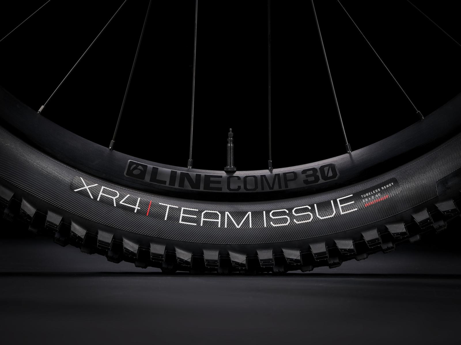 Einen leichten Aluminiumrahmen mit internem Staufach, eine RockShox Pike Gabel mit 130 mm Federweg und geschmeidig ansprechender DebonAir-Federung, einen RockShox Deluxe Ultimate RCT Dämpfer mit 120 mm Federweg und einen drahtlosen SRAM GX Eagle AXS 12fach-Antrieb. Dazu gibt es 4-Kolben-Scheibenbremsen für kontrollierte Abfahrten, Bontragers schlauchlose Line Comp 30 Laufräder samt Dichtmittel und eine Bontrager Line Variosattelstütze.