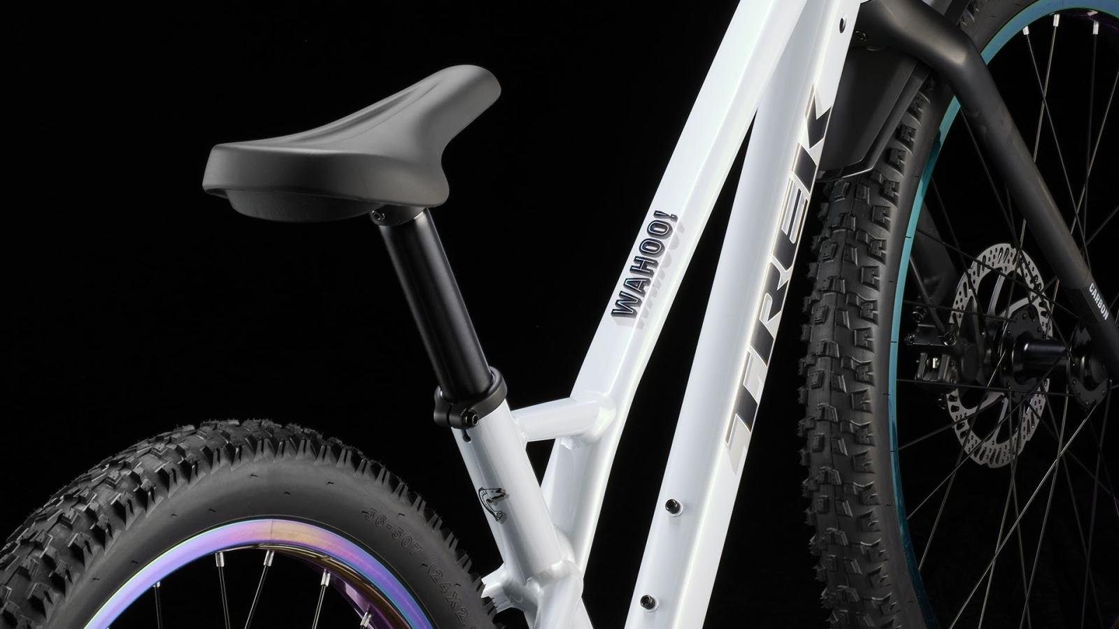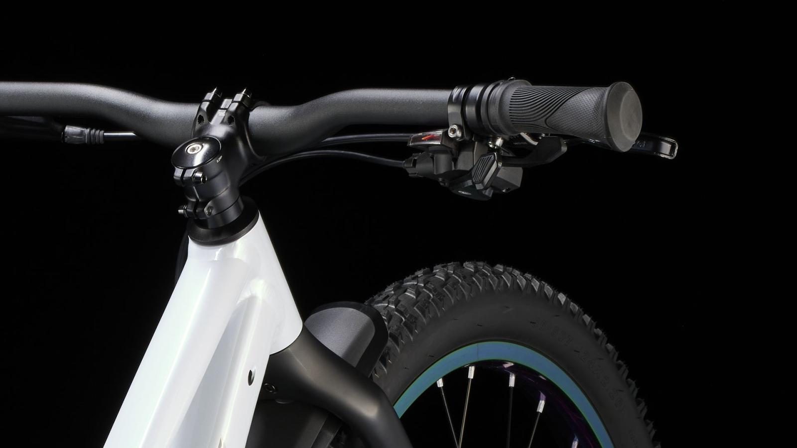 Einen Rahmen aus Alpha Silver Aluminium mit 20 Zoll großen Laufrädern und griffigen, 2,4 Zoll breiten Stollenreifen, die sich im Untergrund festbeißen und ein Plus an Traktion bieten. Dazu gibt es eine speziell auf Kinderbedürfnisse zugeschnittene Ausstattung, wie etwa die intuitive 9-Gang-Schaltung von microSHIFT und die kraftvoll zupackenden hydraulischen Scheibenbremsen.